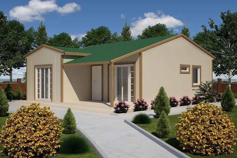 La maison préfabriquée Jacamar de 69 m2 est un choix idéal pour ceux qui veulent établir des espaces vitaux commodes sur des petits terrains. La maison préfabriquée Jacamar à un seul étage qui peut héberger un ou deux personnes vous donne le choix d’un foyer sans manque.